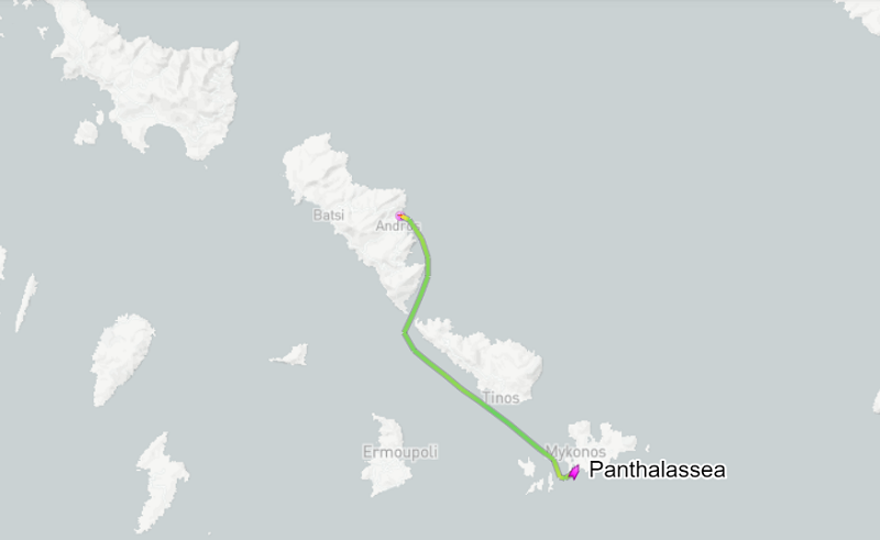 Το σκάφος λεγόταν Panthalassea. Ερχόταν από Μύκονο. Προορισμός έγραφε Τουρκία. Μάλλον θα διέσχιζε το Αιγαίο μέχρι τα Μικρασιατικά παράλια. Σκάφος διακοπών έκανε καλοκαιρινές διαδρομές στο Αιγαίο με τους ευκατάστατους επιβάτες (ιδιοκτήτες ή ενοικιαστές) να απολαμβάνουν το Αιγαίο, τα νησιά του και τους πολλαπλούς προορισμούς του...