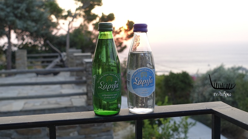 Πάνω στην γοητεία του πρωινού βγάζεις δύο μπουκαλάκια νερό Σάριζα. Το ένα με ανθρακούχο νερό σε πράσινο μπουκαλάκι. Και το άλλο σε διάφανο μπουκαλάκι με την ιστορική σόδα Σάριζα. Μου τα έδωσε καταστηματάρχης στο Νειμποριό λέγοντας: "Γράψε κάτι. Αξίζει τον κόπο. Ένα νέο παιδί κάνει μια νέα αρχή στην παλιά αγαπημένη Σάριζα της Άνδρου. Τα νέα γυάλινα μπουκάλια συσκευασίας δίνουν μια νέα φόρμα στο παλιό αγαπημένο νερό της Άνδρου, που έκανε κάποτε το νησί μας γνωστό. Τότε που ο τουρισμός ήταν υπανάπτυκτος και μεγάλα ξενοδοχεία ή αριστοκρατικές αυλές μετέφεραν νερό από την Σάριζα στην Αθήνα, με ότι μέσα υπήρχαν εκείνη την μακρινή εποχής..."