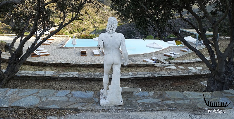 Όμως προσφέρει και μια νότα πολιτισμού. Σε αυτό το φυσικό περιβάλλον, ανάμεσα στην πέτρα, στις ελιές, και στη μοναδικότητα του τοπίου, μια ιδιαίτερη διακόσμηση μαρμάρινων αντιγράφων αρχαίων αγαλμάτων παραπέμπει σε αρχαιοελληνική ή ρωμαϊκή βίλα. Και μια πισίνα που προσφέρει ξεκούραση, κολύμπι και πολιτισμό! Και λέμε πολιτισμό γιατί περιβάλλεται στα βόρεια από ένα πέτρινο αμφιθέατρο 250 ατόμων, που προσφέρεται για συνέδρια και άλλα πολιτιστικά δρώμενα..