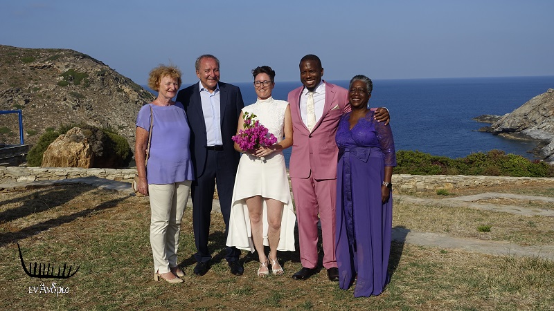 Να σας συστήσουμε το ζευγάρι. Ο γαμπρός, ο Quinn DeVaaux, είναι επαγγελματίας κιθαρίστας της Soul Miousic. Κατάγεται από το Μιζούρι και ζει στην Καλιφόρνια. Η νύφη, η Judith Degean, είναι καθηγήτρια στο πανεπιστήμιο Στάνφορντ στην Καλιφόρνια και κατάγεται από την Ελβετία! Συναντήθηκαν στην Καλιφόρνια και τέλεσαν την τελετή του γάμου τους στην Άνδρο! Στον Ζόργκο, όπου η νύφη είχε έρθει μετά από σύσταση Ελληνίδας καθηγήτριας του Στάνφορντ! Και ο επιβλέπων την τελετή, Alex Fine, υπήρξε συμμαθητής της Judith στο κολέγιο και ζει στην Βόρεια Καρολίνα!!! Όλοι αυτοί και άλλοι 80 επισκέπτες έφτασαν στον Ζόργκο από τρεις ηπείρους της γης: Βόρεια Αμερική, Ευρώπη, Αυστραλία!!! Είπατε τίποτα; Σας είπαμε πολυεθνικός γάμος...