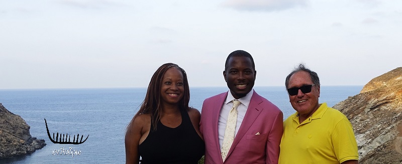 Η πρόσκληση ήταν παραπάνω από ενδιαφέρουσα: πολυεθνικός γάμος στο Aegea Blue στο Ζόργκο με βουδιστική επιρροή!!! Ο γιατρός Ακύλας Αναγνωστίδης, ιδιοκτήτης του σπουδαίου ξενοδοχείου, είχε την ιδέα να εισηγηθεί στο ζευγάρι από την Καλιφόρνια να παραβρεθεί και να παρουσιάσει το θέμα το Εν Άνδρω. Το ζευγάρι αποδέχτηκε με χαρά. Ημέρα Σάββατο 3 Σεπτεμβρίου 2022. Ώρα 17:00.