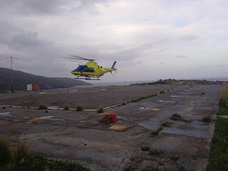 Φωτογραφία άφιξης του ελικοπτέρου του ΕΚΑΒ σήμερα Σάββατο το απόγευμα.