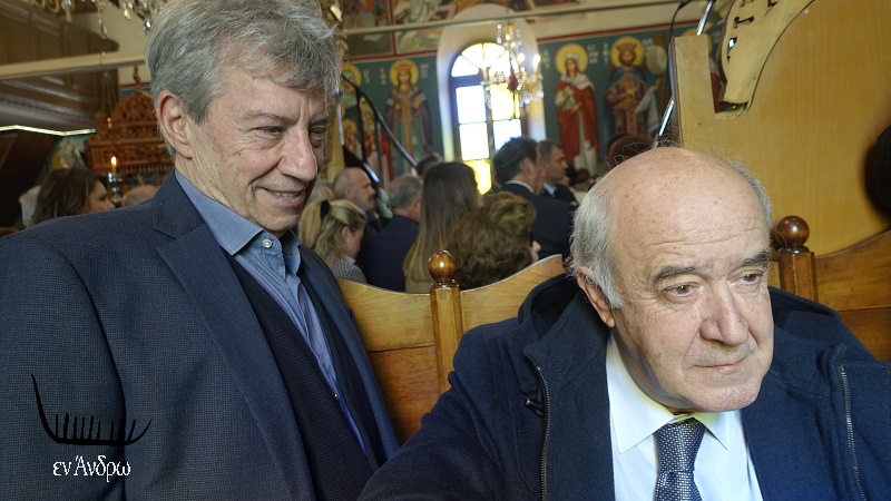 Δύο φίλοι ξεχωριστοί ανδριώτες από τα παλιά έσμιξαν στη μεγάλη γιορτή της Θεοσκεπάστου. Ο καπετάν Νίκος Γλυνός και ναύαρχος Ε.Α. Ντίνος Γκιώνης. Μια ωραία και ζεστή στιγμή στα στασίδια της Θεοσκεπάστου...