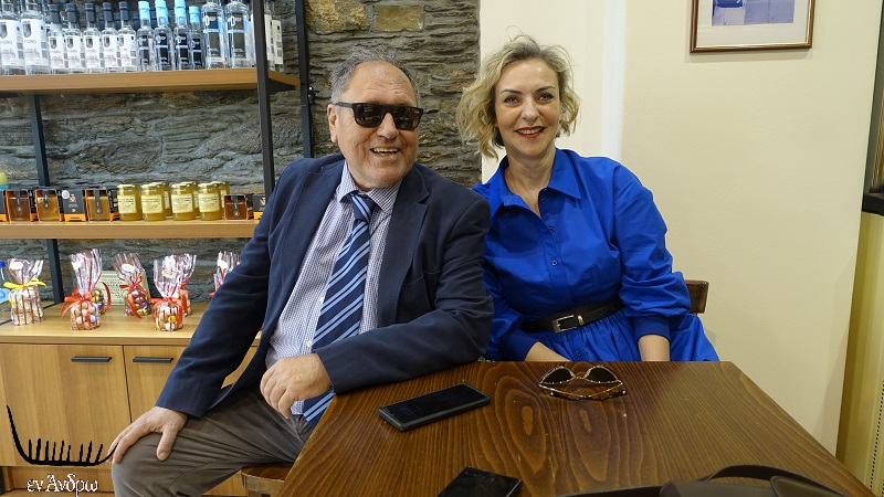 Τέλος δύο λόγια για την τακτική πάντα αέρινη, ακούραστη και καλοντυμένη δημοσιογράφο, εκδότρια και ιδιοκτήτρια της Κυκλαδικής Νάξου, που για μια ακόμα φορά βρέθηκε στην Άνδρο καλύπτοντας την εορτή της Θεοσκεπάστου. Η Νάξος πλέον είναι σχεδόν το πολυπληθέστερο και σαφώς μεγαλύτερο νησί των Κυκλάδων το οποίο συνεχώς ανεβαίνει οικονομικά, τουριστικά και αγροτικά: Με την Κυκλαδική της Νάξου έχουμε ως Εν Άνδρω συνεργαστεί και θα συνεχίσουμε προσεχώς. Την φωτογραφία τράβηξε ο έπαρχος Άνδρου και είναι από το ζαχαροπλαστείο του. Εκεί καθίσαμε να ξεκουραστούμε μετά από ώρες και χιλιόμετρα περπάτημα ανήμερα της Θεοσκεπάστου.