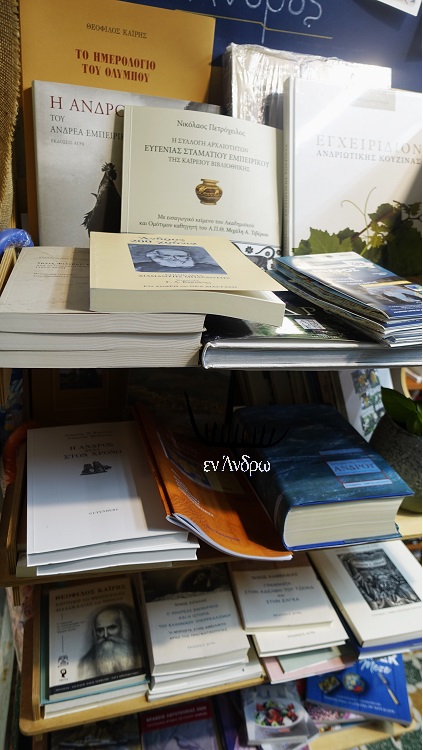 Στάση στο βιβλιοπωλείο της Σοφίας Γαρυφάλλου στη Χώρα. Η Σοφία είναι ίσως η πλέον ενημερωμένη βιβλιοπώλισσα των Κυκλάδων. Με εντυπωσιακές γνώσεις για όλων των ειδών τα βιβλία. Και με ένα πάντα μοναδικό σταντ για την Άνδρο. Εκεί καταφεύγουν συνήθως όλοι οι επισκέπτες. Η Άνδρος έχει πλέον τη δική της βιβλιογραφία για την ιστορία και τον πολιτισμό της. Και η Σοφία είναι πάντα εκεί να κρατά τα ράφια της ενήμερα...