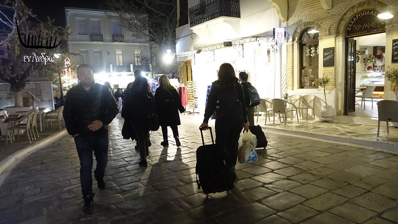 Δεκάδες άνθρωποι με βαλίτσες με ροδάκια κατέβαιναν τον πεζόδρομο με κατεύθυνση τη Ρίβα. Γεμίζει η παλιά ξεχασμένη πόλη από κατοίκους ή από επισκέπτες του AirBNB. Αρχίζει αυτές τις μέρες η οικονομία του νησιού να κινείται για τα καλά...