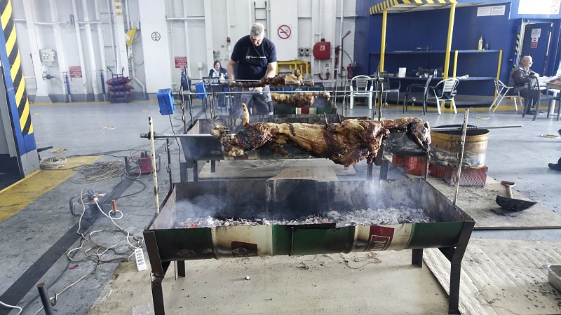 Το πασχαλινό γλέντι στο Superferry μεταφέρθηκε αυτή τη φορά στο Γαύριο μιας και πέρσι ήταν στη Χώρα. Το όμορφο πλοίο έδεσε στη νότια προβλήτα και από το πρωί το πλήρωμα επιδόθηκε στις πατροπαράδοτες προετοιμασίες του οβελία.
