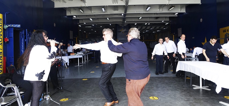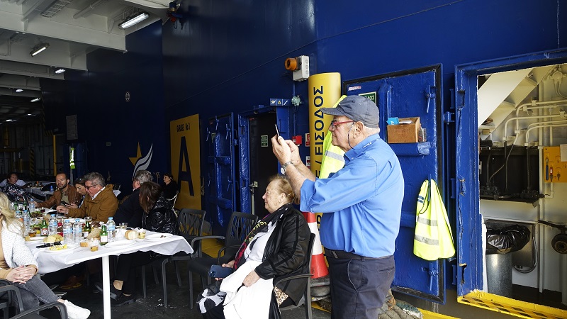 Και με την ευκαιρία βγήκαν και οι σχετικές αναμνηστικές φωτογραφίες με τον μουσικό Βαγγέλη Λουσίδη, τον πράκτορά του πλοίου Γιώργο Μπατή, τον αδελφό του Βαγγέλη Λοτσάρη και τον καπετάν Θανάση, που ήταν και οικοδεσπότης της γιορτής.