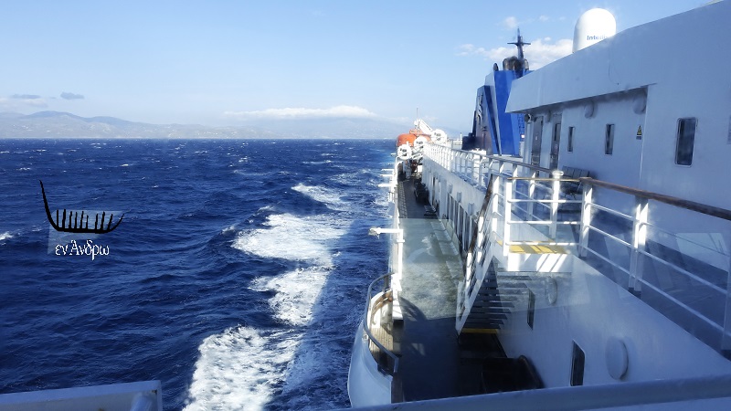 Πίσω η Άνδρος απλώνει όμορφη και νωχελική στο ανέφελο απόγευμα που προχωρά...
