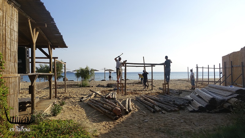 Μια στάση στον Κάτω Άγιο Πέτρο οργασμός. Η "Καλύβα" επανέρχεται με την έναρξη της καλοκαιρινής σεζόν στα πρότερά της. Εργάτες δουλεύουν να επαναφέρουν σε οργάνωση ολοήμερης αναψυχής την παραλία.