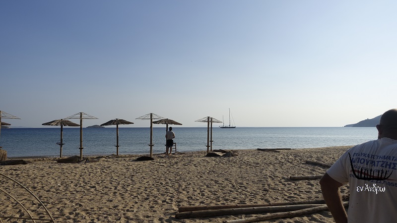 Οι ομπρέλες απλώνουν στην αμμουδιά. Το ιστιοφόρο απλώνει στη θάλασσα. Η μέρα απλώνει νωχελικά προς τη δύση...