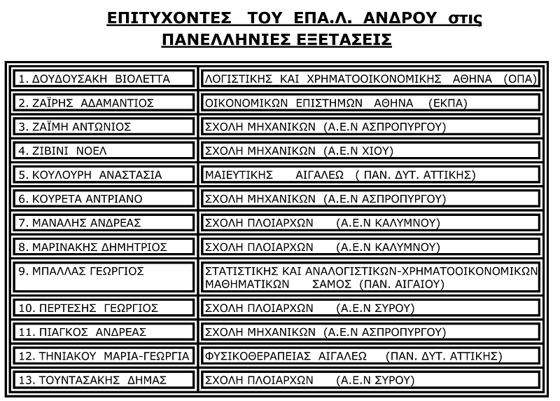 ΕΠΑΛ ΑΝΔΡΟΥ: Οι επιτυχόντες στις πανελλήνιες εξετάσεις...