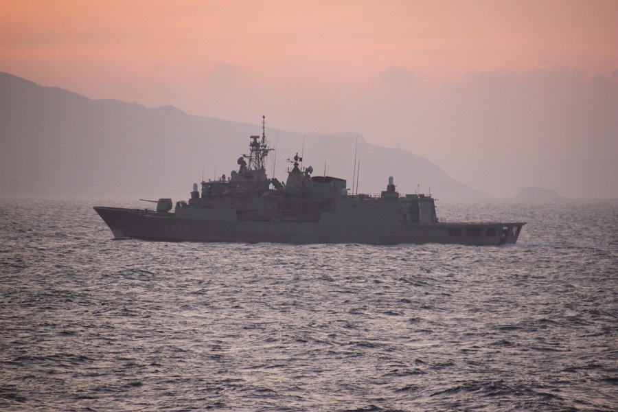 Πολέμικό πλοίο της άσκησης στην περιοχή του πεδίου βολής Άνδρου