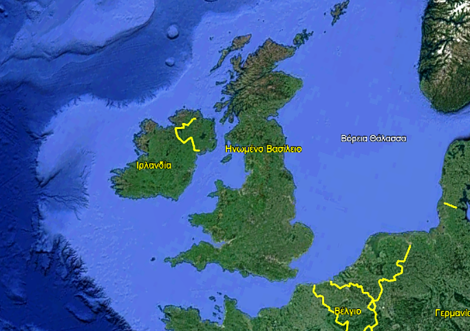 Τα Πεντλαντ Φέρθ πάνω και το στενό της Μάγχης κάτω. Το συμβάν που αναφέρεται έγινε στον Βόρειο Ατλαντικό, μια μέρα πριν το πλοίο μπει στα στενά στο πάνω μέρος της Σκοτίας.