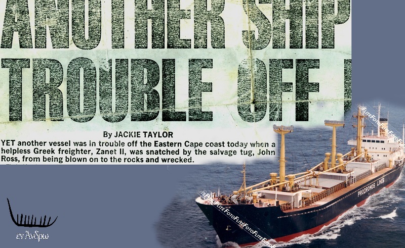 Μια ζωή στα άκρα, μια ζωή στα όρια, η ζωή των ναυτικών της Άνδρου, για την οποία λίγα είπαν αυτοί κι ακόμα λιγότεροι ασχολήθηκαν μαζί τους. Αριστερά το John Ross σε δράση στον ωκεανό και δεξιά η περιγραφή της διάσωσης στην εφημερίδα "Eastern Province Herald" του Πορτ-Ελίζαμπεθ την επομένη 10/9/91. "Το John Ross και το Zanet II παρασύρονταν από κύματα 8 μέτρων όταν κατάφεραν κι έδεσαν κάβο... Ήταν τύχη που το John Ross ήταν στην περιοχή είπε ο λιμενάρχης John Davis. Είχε δέσει για μιας επισκευή 24 ωρών και μετά θα έφευγε... ". Από εφημερίδα του Πορτ-Ελίζαμπεθ της επομένης 10/9/91.