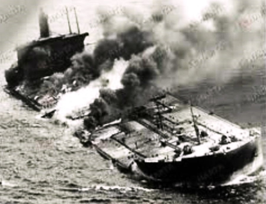 Το πλοίο την επόμενη μέρα λαβωμένο εξακολουθεί να πλέει παρά τις εκρήξεις και τη φωτιά...