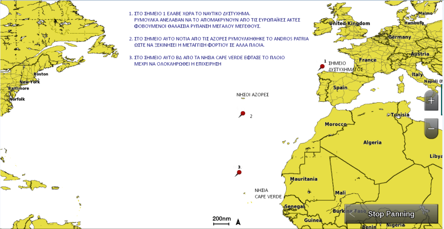 Το στίγμα του πλοίου την ώρα του συμβάντος.