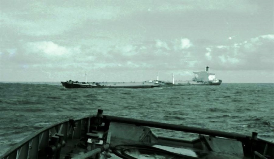 Υπήρχαν πολλά σκάφη στην περιοχή. Περίπου 15. Αλλά όλα σε κάποια απόσταση από εμάς. Στις 8:30 ο θερμαστής, ο πρώτος μηχανικός κι εγώ είμαστε μόνοι στο πλοίο όταν άρχισε να βγαίνει πάλι πετρέλαιο στο κατάστρωμα.