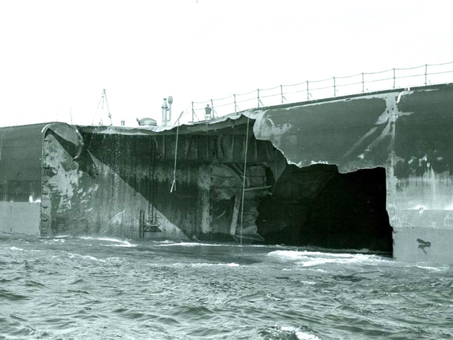 Η κλίση του πλοίου την επομένη μετά την έκρηξη και τη φωτιά...