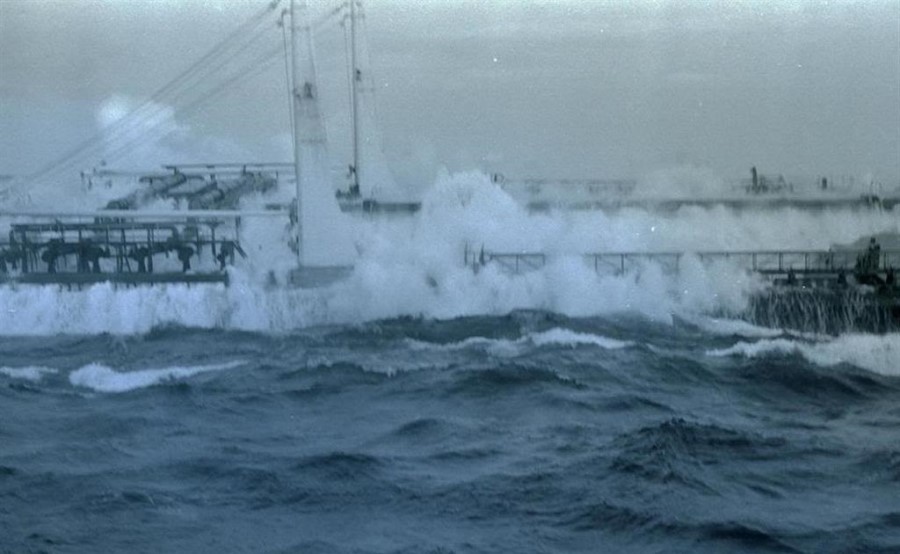 Τα μεγάλα κύματα πέρναγαν και πάνω από την γέφυρα του πλοίου.
