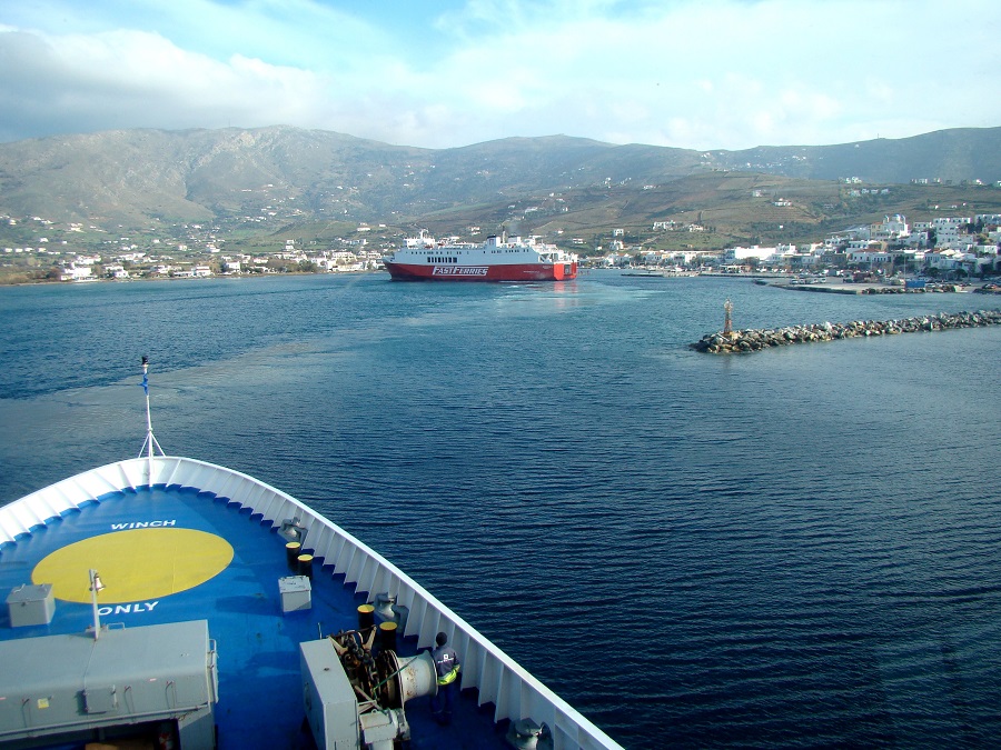 Το SuperFerry II μπαίνει στη Σύρο μετά την Άνδρο (φωτ. Εν Άνδρω).