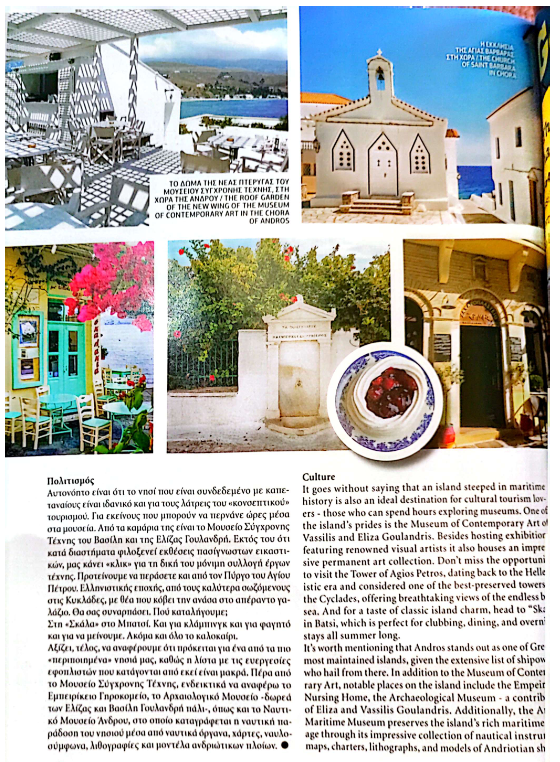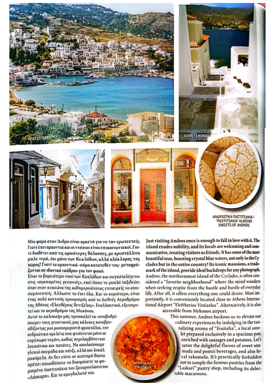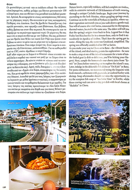 Αφιέρωμα στην Άνδρο στο περιοδικό της αεροπορικής εταιρείας Sky Expess