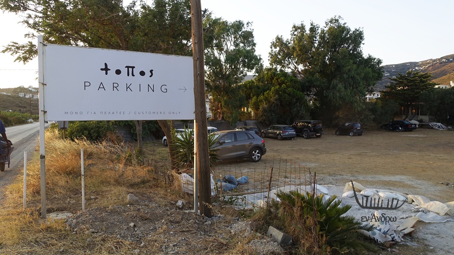 Το μάλλον πρωτότυπο για τα δεδομένα της Άνδρου πως μαζί με το εστιατόριο-μπαρ προέβλεψαν την ενοικίαση χώρου για ένα τεράστιο πάρκινγκ ώστε μπροστά από τον "Τόπο" να υπάρχει τόπος και θέα...