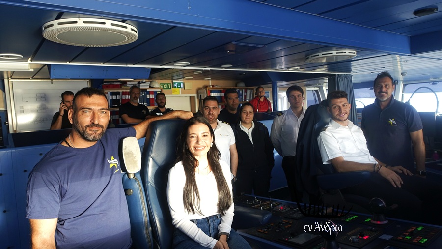 Άλλη μια αποκλειστική φωτογραφία όσων βρέθηκαν στη γέφυρα στην πρώτη διαδρομή του πλοίου. Τα ονόματα όσων είναι στη φωτογραφία: ΤΑΣOΣ XΛAMIΔHΣ NAYTHΣ, ΓIΩPΓOΣ AΛEΣTAΣ YΠOΠΛOIAPXOΣ , ΗΛΙΑΣ ΓΡΗΓΟΡΑΤΟΣ ΠΡΟΙΣΤΑΜΕΝΟΣ ΝΑΥΤΙΛΙΑΚΟΥ ΤΜΗΜΑΤΟΣ, XPYΣANΘH ΣΤΕΦΑΝΟΥ ΠΛΟΙΟΚΤΗΤΡΙΑ, ΓIANNHΣ BOYTΣEΛAKOΣ ΠΛOIAPXOΣ , EIPHNH BIΔAΛH YΠAPXOΣ OMIXAΛHΣ BOYΛΓAPHΣ ΔOKIMOΣ ΠΛOIAPXOΣ, BAΓΓEΛHΣ KAΛΛHΣ ΠPOIΣTAMENOΣ HΛEKTPOΛOΓOΣ , ΓIΩPΓOΣ PAITΣOΣ A MHXANIKOΣ, ΣΠYPOΣ KAΛOΓHPOY A MHXANIKOΣ, ΛEONAPΔOΣ KOPAXAHΣ ΠPOIΣTAMENOΣ HΛEKTPOΛOΓOΣ , BAΓΓEΛHΣ BOYΔOYPHΣ NAYTHΣ