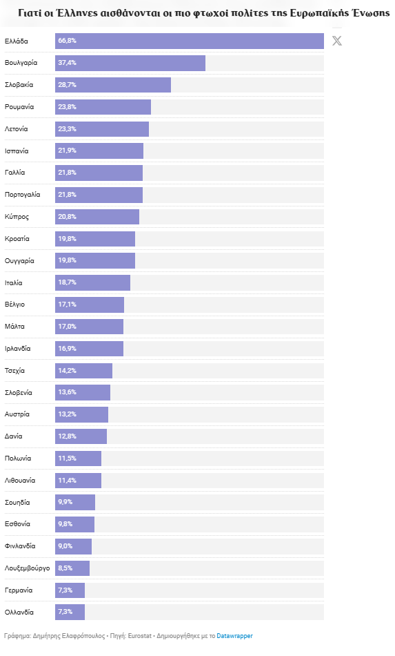 Γιατί οι Έλληνες αισθάνονται οι πιο φτωχοί πολίτες της Ευρωπαϊκής Ένωσης;