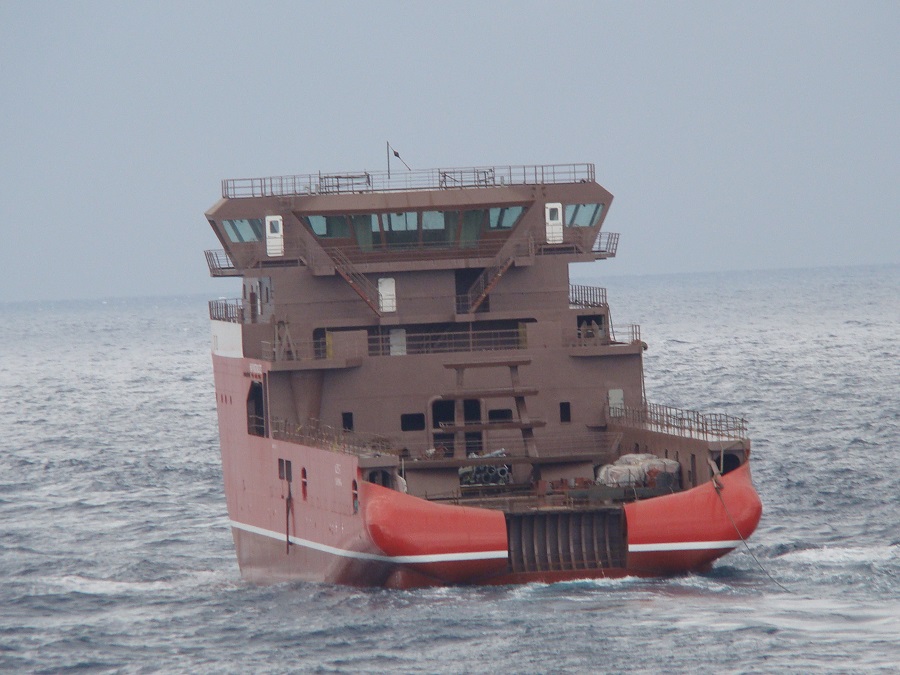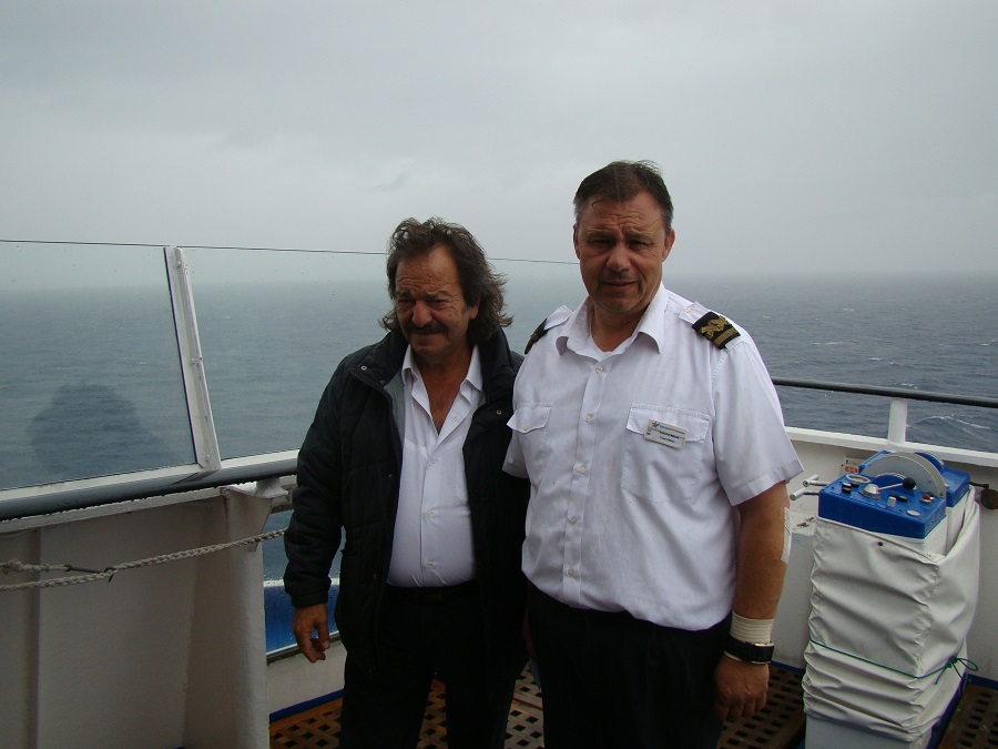 Ταξιδεύαμε για Άνδρο: στη γέφυρα του SuperferryII. Στον Κάβο Ντόρο. Ο καιρός θαμπός. Η θάλασσα ήρεμη. Από μακριά δύο κόκκινα σκάφη τραβούσαν προς νότο. Το τραβούσαν κυριολεκτικό, καθώς το πρώτο, ένα ρυμουλκό τραβούσε το δεύτερο: ένα ιδιότυπο σκάφος με πολύ ψηλή πλώρη. Ο εκ Καρύστου καπετάν Αντώνης, που είχε βάρδια, πήρε το ραδιοτηλέφωνο και επικοινώνησε λέγοντας τους πως αλλάζει ρότα και θα περάσει από πίσω τους. Μετά άρχισε να ψάχνει στο ηλεκτρονικό δορυφορικό ραντάρ τα στοιχεία τους. Ξαφνικά γυρνά ενθουσιασμένος και μας λέει: