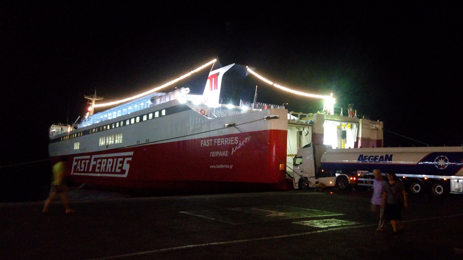 To "Andros" φορτώνει πετρέλαιο για το πρωινό δρομολόγιο στο λιμάνι της Ραφήνας