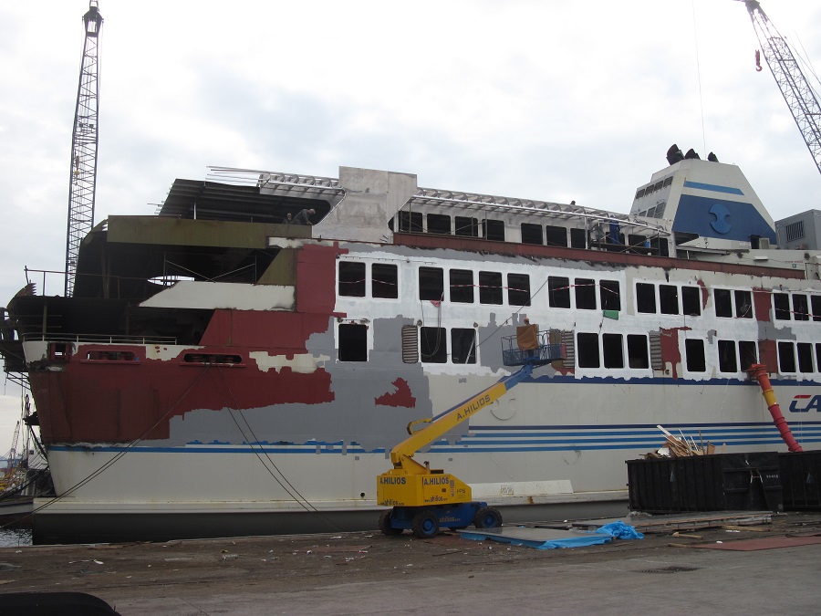 Το Superferry III στο Πέραμα προχωρά προς την ολοκλήρωση της λαμαρινοδουλειάς