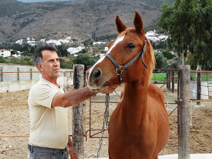 Ο Σταύρος Ζαγοραίος με μια εντυπωσιακή νεαρή φοράδα. "'Αμα δεν τα αγαπάς το καταλαβαίνουν αμέσως" σχολίασε καθώς την κράταγε για φωτογραφία (φωτ. Εν Άνδρω).