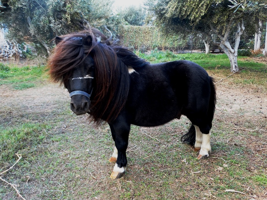 O Μπίλυ, το πόνι των εγγονιών και η μασκώτ της φάρμας. Είναι ράτσα Σετλαντ. Την ώρα που περνάγαμε δίπλα του ο Νίκος τον ρώτησε φιλικά: "τι κάνεις Μπίλυ; " Και ο Μπίλυ χρεμέτισε με εκείνο το υπέροχο τρόπο που μόνο τα άλογα ξέρουν. Ξαφνιάστηκα. Ήταν σαν χρεμέτισμα μεγάλου αλόγου. Το μικρόσωμο μέγεθος σε ξεγελάει. Όμως είναι ένα χαριτωμένο αλογάκι (φωτ. Εν Άνδρω).