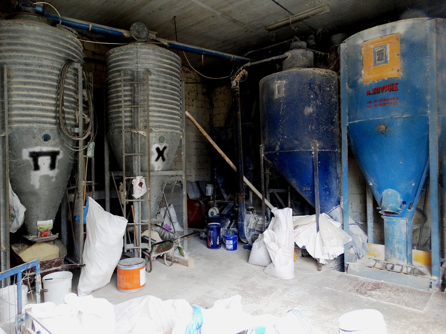Σιλό ζωοτροφών για τους χοίρους και τα μοσχάρια της φάρμας. Ζωοτροφές παράγουν οι ίδιοι μα δεν επαρκούν. Έτσι φέρνουν 30 τόνους καλαμπόκι το μήνα από Σέρρες, Βέροια κλπ. (φωτ. Εν Άνδρω).