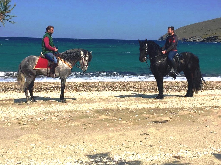 Η αγάπη τους για τα άλογα είναι μεγάλη και συνηθίζουν τακτικά να πηγαίνουν μεγάλες βόλτες στα βουνά της Άνδρου. Τους συναντήσαμε 1-2 φορές στη Μονή Παναχράντου. Εκτρέφουν, λοιπόν, και άλογα. Αυτό είναι το χόμπι όλης της οικογένειας. Ή, μάλλον και των τέσσερων οικογενειών και όλων των μελών τους που ζουν γύρω από την φάρμα...