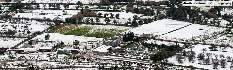 Πανοραμική αεροφωτογραφία της φάρμας Ζαγοραίου από τον Δημήτρη Αντωνέλλο. Τοπίο χειμωνιάτικο με χιόνια.