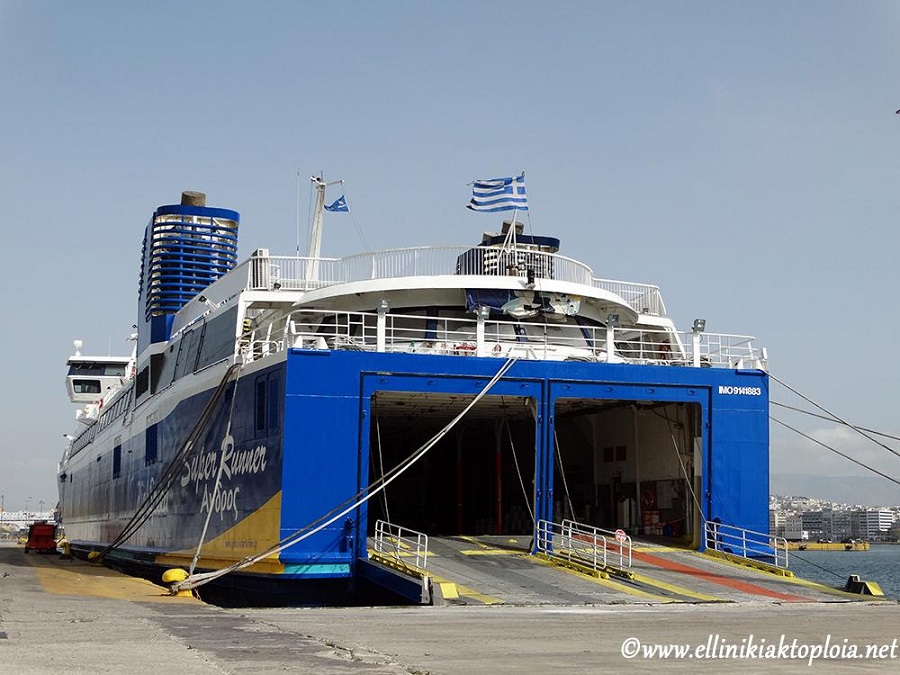 Το ταχύπλοο «SuperRunner» βρίσκεται ήδη στο λιμάνι του Πειραιά, αγκυροβολημένο μπροστά από το υπουργείο Ναυτιλίας, όπου προβάρει τα χρώματα της εταιρίας, που είναι το χρυσό αστέρι και μπλε, με κίτρινες πινελιές στην πλώρη και την πρύμνη.
