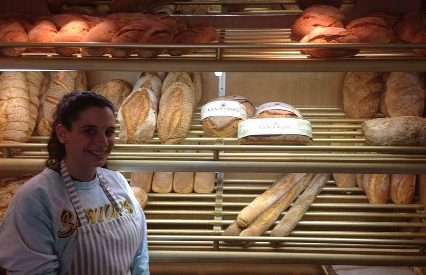 Από τους πρώτους φούρνους που ξεκίνησε να πουλά το Καλογερικό-Παναχραντινό είναι του Γιάννη Παντερλή από το Κόρθι. Εδώ η Ιωάννα ποζάρει μπροστά στο νέο ψωμί.