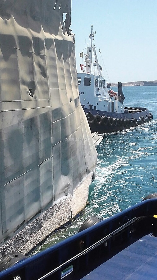 Τα ρυμουλκά φέρνουν το πληγωμένο ταχύπλοο του πολεμικού ναυτικού στην Ελλάδα...