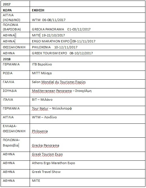 Ο προγραμματισμός για τη συμμετοχή της Περιφέρειας Νοτίου Αιγαίου σε τουριστικές εκθέσεις στην Ελλάδα και στο εξωτερικό για  την περίοδο 2017-2018 έχει ως ακολούθως: