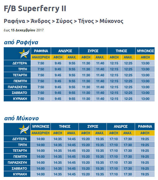 Θα αναχωρεί το μεσημέρι από την Ερμουπόλη στις 15.35, θα φτάνει στο Γαυριο στις 17.10 και θα αναχωρεί για την Ραφήνα στις 17.30.