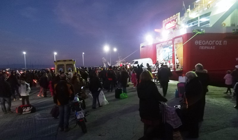 Αρκετές εκατοντάδες επιβάτες αναμένουν να ανέβουν στο πλοίο που θα φύγει αμέσως μόλις ολοκληρώσει το ξεφόρτωμα και το φόρτωμα για Άνδρο-Τήνο-Μύκονο. Μόνο Χτιστούγεννα δεν θυμίζει η κίνηση στο λιμάνι (φωτ. Εν Άνδρω).