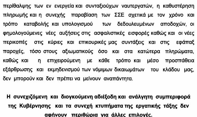 Το κείμενο της ανακοίνωσης της Π.Ν.Ο και οι λόγοι της απεργίας και οι λόγοι τα εξής.