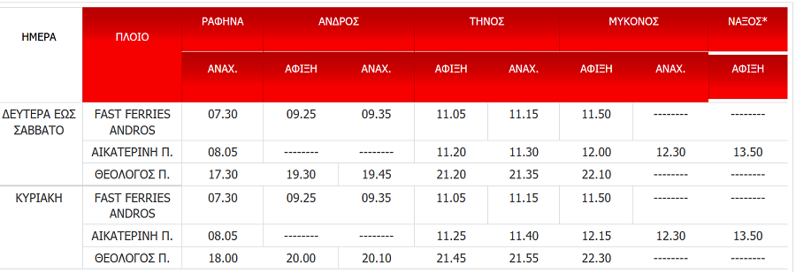ΕΠΙΠΛΕΟΝ ΔΡΟΜΟΛΟΓΙΑ ΠΑΡΑΣΚΕΥΗ 1/6 & 8/6 ΑΠΟ ΡΑΦΗΝΑ ΩΡΑ 18:45 ΓΙΑ ΑΝΔΡΟ(20:45-21:00) - ΤΗΝΟ(22:35-22:45) - ΜΥΚΟΝΟΣ(23:20-23:35) - ΡΑΦΗΝΑ: 03:30
