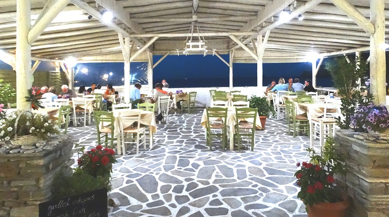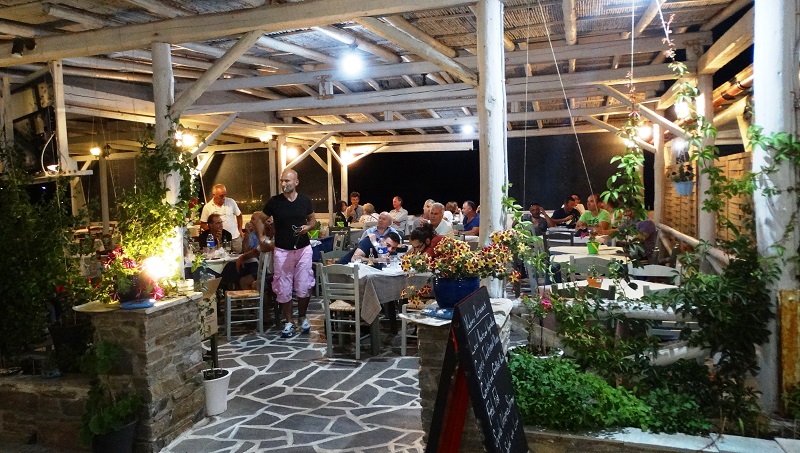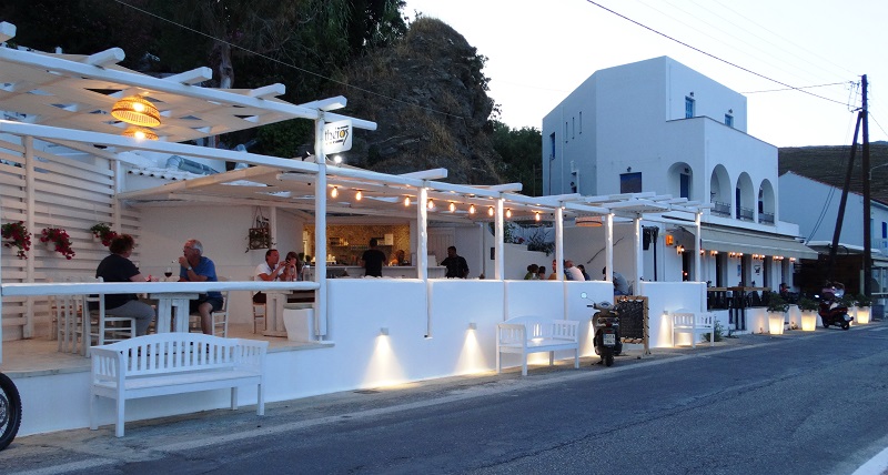 Ανανεωμένο και το "Θέρος" με νέα κουζίνα στην μεγάλη παραλία. Δίπλα το κλασικό Swell της νεολαίας... (φωτ. Εν Άνδρω).