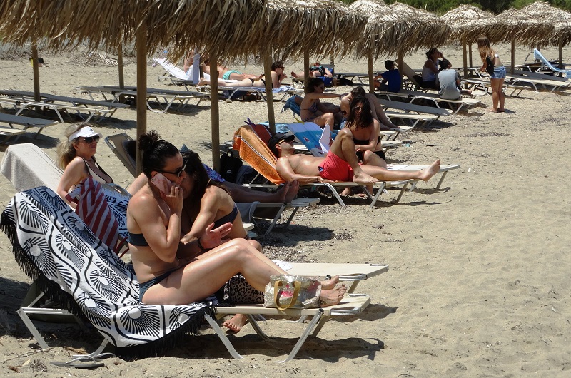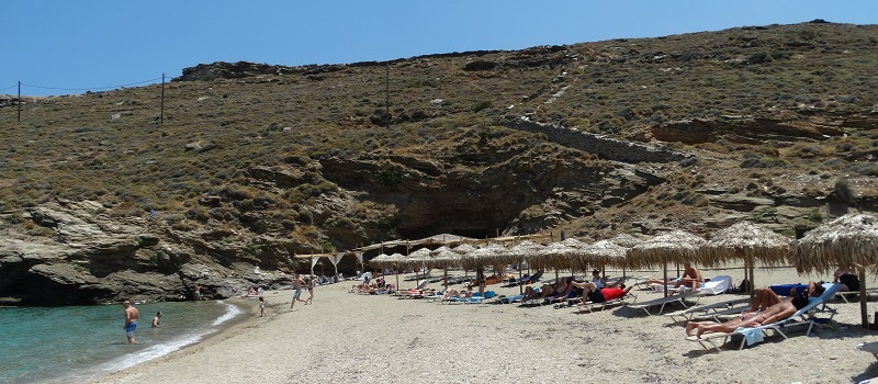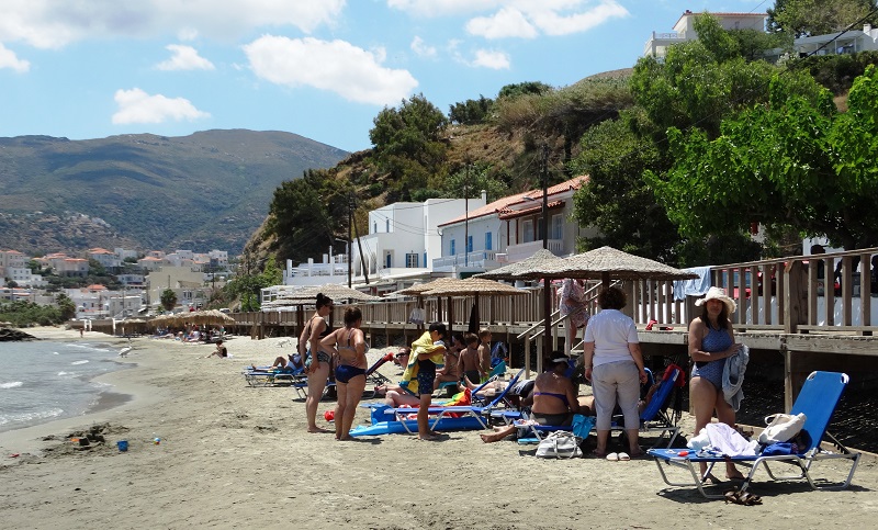 Και το κλασικό οικογενειακό στέκι στις ομπρέλες του Στυλιανού. Λίγο πιο πέρα οι ομπρέλες του Swell. Το καλοκαίρι στο Νειμποριό είναι πια γεγονός (φωτ. Εν Άνδρω).