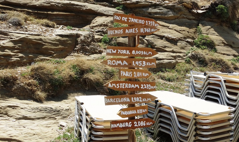 Νεανικός χώρος. Αλλά και χιουμοριστική κατάσταση. Μια σειρά ξύλινες πινακίδες στην είσοδο του μπαρ πληροφορούν για τις αποστάσεις - υπολογίσμενες με GPS για να μην χαθείτε στους πέντε δρόμους! - μεγάλων λιμανιών της Ευρώπης και της Αμερικής που έφτασε κάποτε ως καπετάνιος - πριν ξεμπαρκάρει στην Άνδρο ο Χαλάς (φωτ. Εν Άνδρω).
