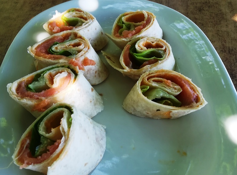 Επιπλέον σολωμός με μαρούρι σε αραβική πίτα. Απλότητα και γευστικότητα... (φωτ. Εν Άνδρω).