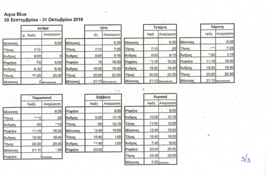 Η Seajets ανακοινώνει την έναρξη των δρομολογίων του επιβατηγού/οχηματαγωγού πλοίου Aqua Blue από σήμερα Πέμπτη 1 Αυγούστου στις 16.30 από το λιμάνι της Ραφήνας με καθημερινές αναχωρήσεις προς Άνδρο, Τήνο και Μύκονο.